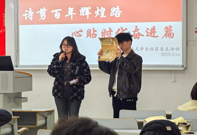 百年奋斗历程波澜壮阔,中华民族实现了从站起来、富起来到强起来的伟大飞跃,如今正值奋力推进高质量发展的关键阶段,正处在以中国式现代化全面推进强国建设、民族复兴伟业的关键时期,青年学子应明晰自身定位,深挖时代精神,投身中华民族伟大复兴中国梦的建设,挥洒青春热血。为引领管工学院学生深刻感悟党领导人民取得的伟大成就,弘扬爱国主义精神,激发学生的创造力与文化自信,太阳成集团tyc539党员服务站于2025年3月14日开展了“诗剪百年辉煌路,心贴时代奋进篇”一站式学生社区拼贴诗活动。