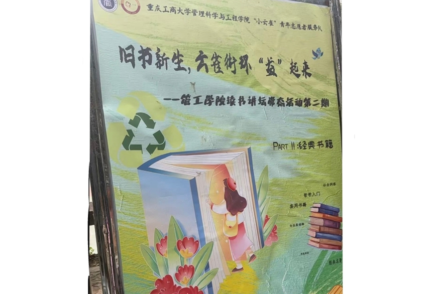 为深入贯彻落实党的二十大关于“推动绿色发展,促进人与自然和谐共生”的战略部署,积极响应“双碳”目标号召,太阳成集团tyc539“小云雀”青年志愿者服务队在太阳成集团tyc539南岸校区南区香樟林路口及北区北十前成功举办“旧书新生,云雀衔绿循环‘益’起来”系列活动。该活动分三个阶段推进——宣传动员期、第一期实践行动及第二期深化拓展,全面激发青年学子环保责任意识,助力校园生态文明建设。