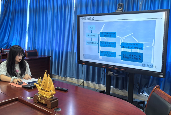 邓春燕同学以“基于多源信号的风机点蚀故障诊断”为主题,提出小样本学习与多元信号分析方法,通过振动、噪声、电流三类信号的特征融合提升故障诊断效能。研究构建了多模型组合方案:振动信号诊断采用小样本图神经网络结合小波变换,分类准确率达96.56%;噪声信号诊断运用关系网络与编辑学习网络,准确率达95%;电流信号诊断通过短时傅里叶变换与图神经网络处理,准确率达94.34%。基于加权特征融合(振动信号权重0.7、噪声信号0.1、电流信号0.2)的综合模型,显著提升了诊断的灵敏性与鲁棒性,为风电机组高效运维提供了技术支撑。