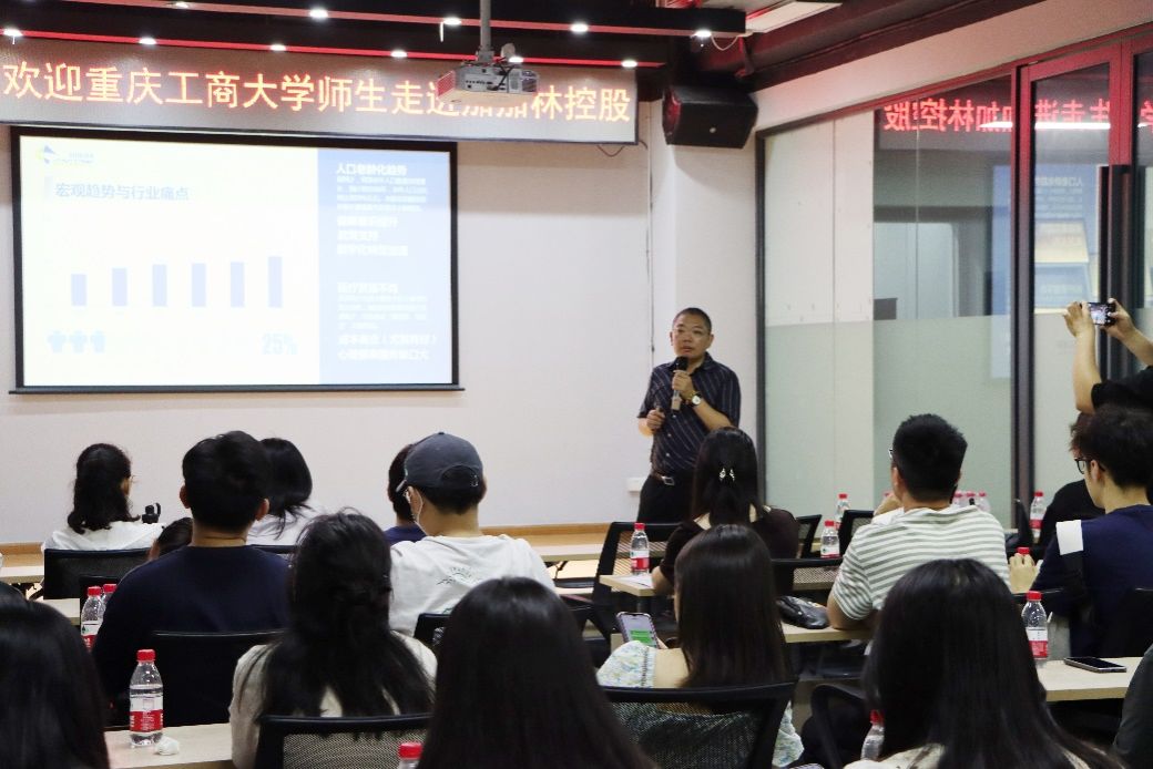 在加加林控股有限公司人力资源总监陈茜的引导下,师生深度考察了企业核心业务单元。医流巴巴体验店呈现的“医疗器械+互联网”创新模式,与乐邮送智能仓配中心展示的数字化供应链管理系统,形成鲜活的教学案例。沉浸式的研习之旅,助力学生将课堂理论与企业实践深度交融,实现学以致用。
