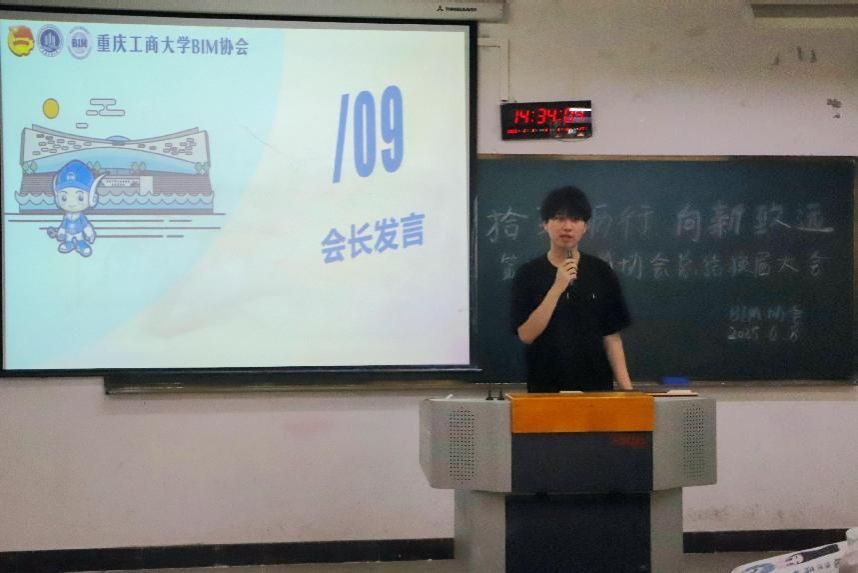 在会长发言环节,三位会长依次上台发言。他们首先对老师的栽培和同伴的帮助表示了感谢,然后对新一届的会长团成员和部长团成员的加入表示热烈的祝贺,同时表达对BIM协会的不舍。随后,他们从协会未来发展出发,强调学科竞赛板块的重要性,告诫协会成员要加强自身竞赛能力。之后,他们分享了自己的求职经历与经验,为协会成员的就业问题提供参考。最后,会长们希望协会成员能够把握学习的时光,学好BIM技术,追寻自己热爱的事物,并期望BIM协会在新一届会长的带领下能够走上更高的舞台。