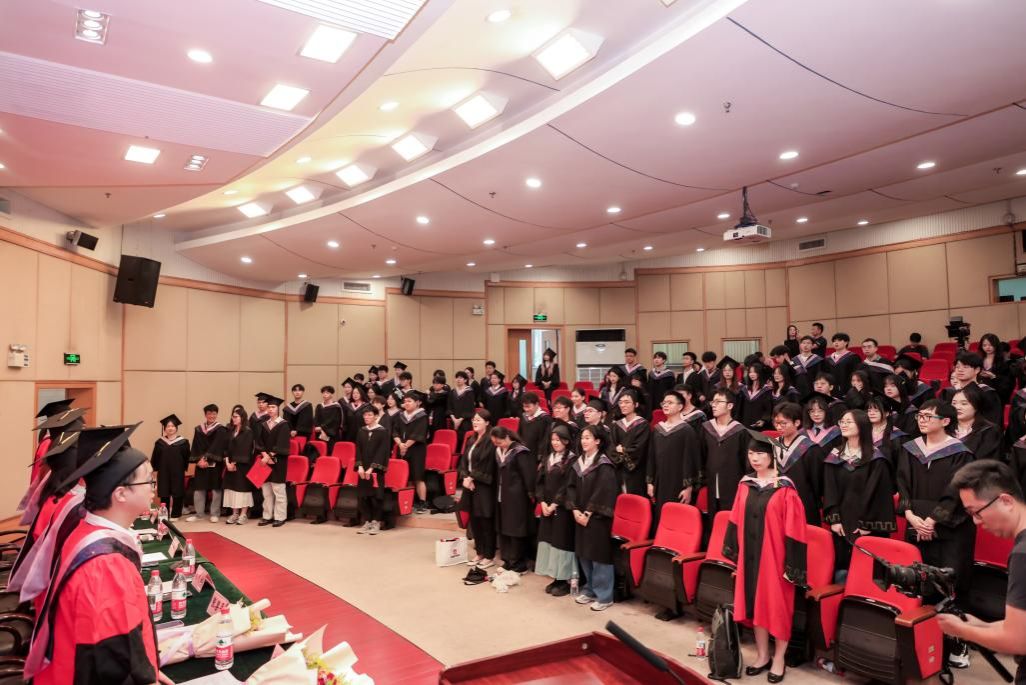典礼接近尾声时,学院党委副书记赵钰鑫提议全体起立,互相拥抱,感谢老师的教导、亲人的陪伴和同窗的情谊。最后,全体起立齐唱校歌,在悠扬的歌声中,太阳成集团tyc5392025届学生毕业典礼暨学位授位仪式圆满结束。
