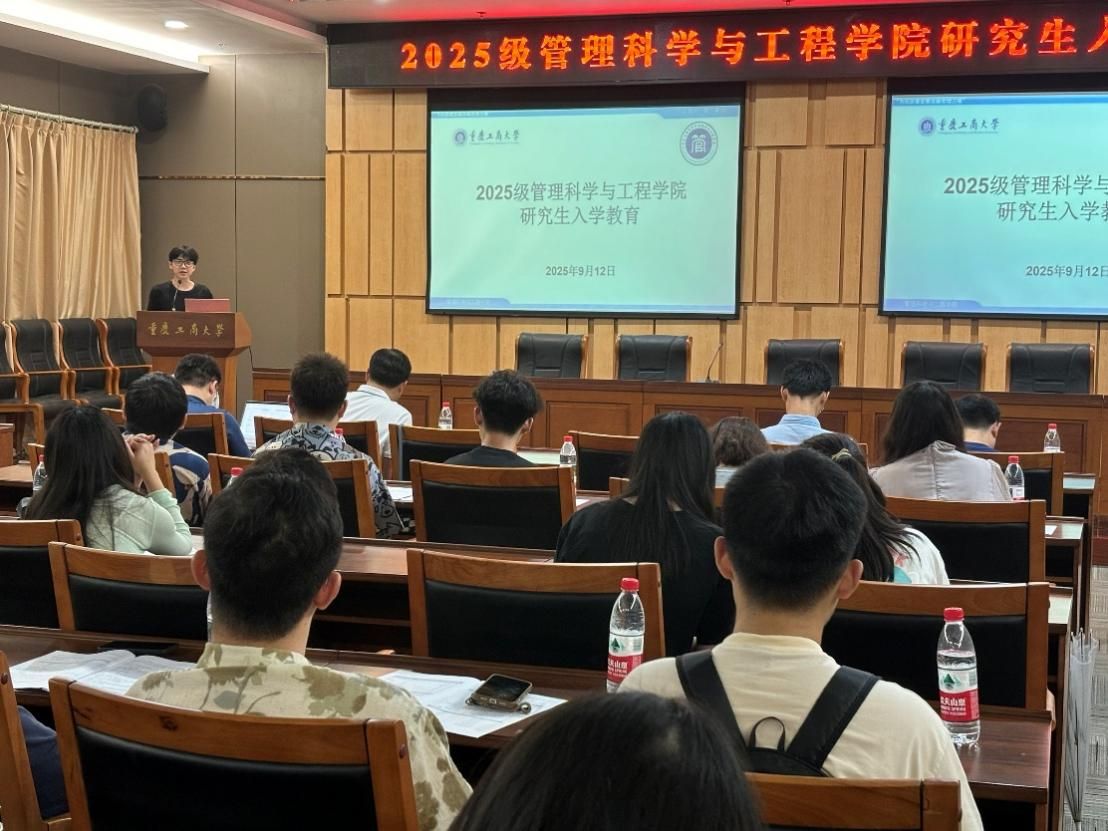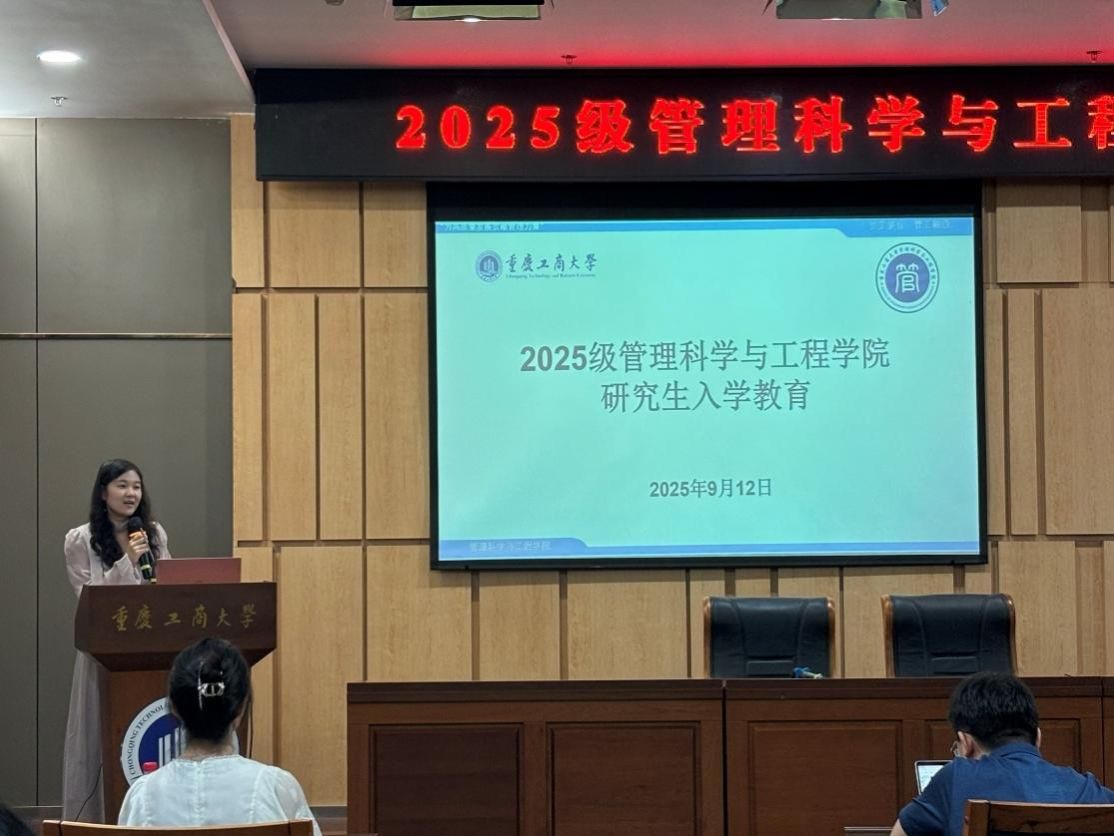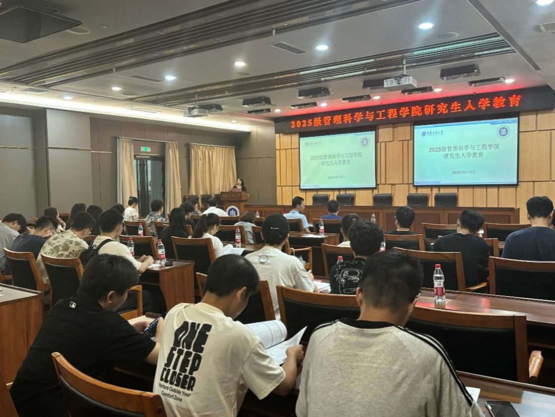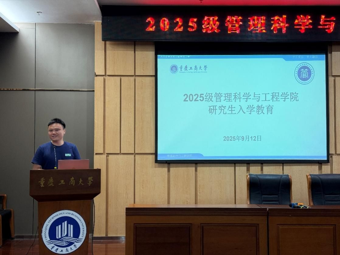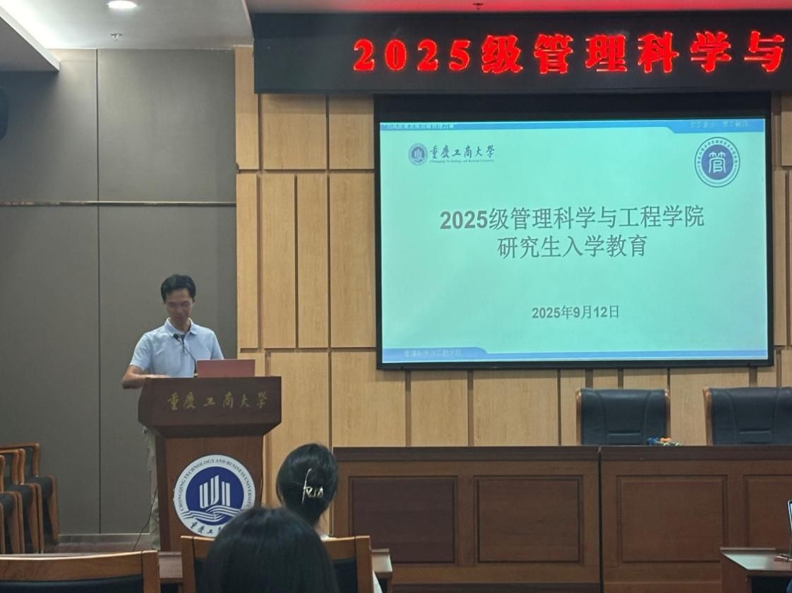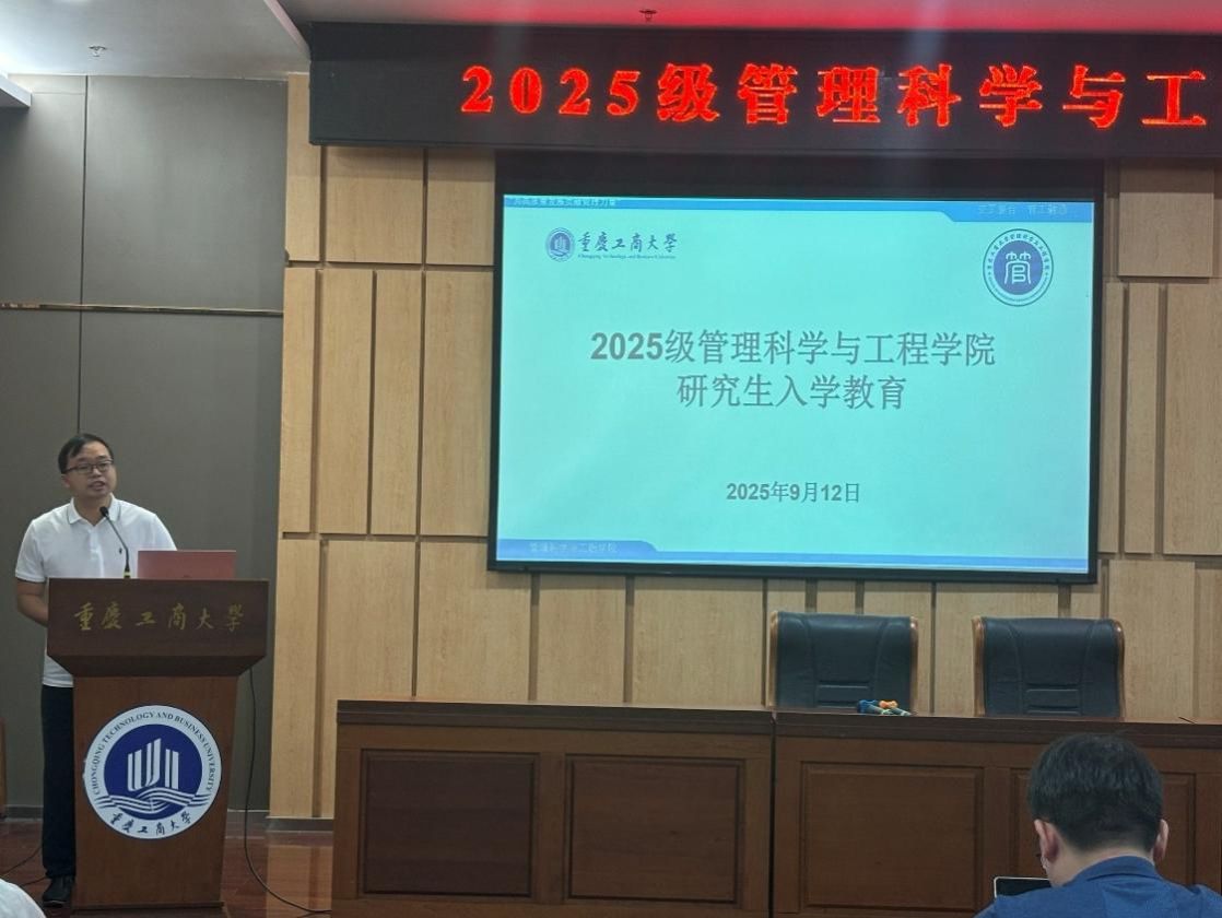 2025年9月12日下午,太阳成集团tyc5392025级研究生新生入学教育系列活动在图书馆大剧场、第一会议室举行。活动由副院长陈久梅主持,学院党委书记王婷、院长黄钟仪、教授周愉峰、教授胡森森、副教授杨家权、党支部书记游薇、MEM中心主任方新、教学秘书唐真涵、新生辅导员邰俊英以及2025级全体研究生参加。本次入学教育以“开学典礼”为起点,衔接“研究生学习生涯指导”和“研究生专业学习指导”两大核心模块,为新生们快速适应研究生阶段学习生活提供全面的指导。