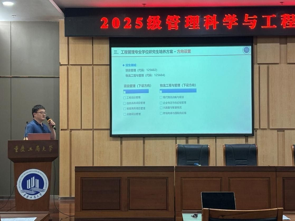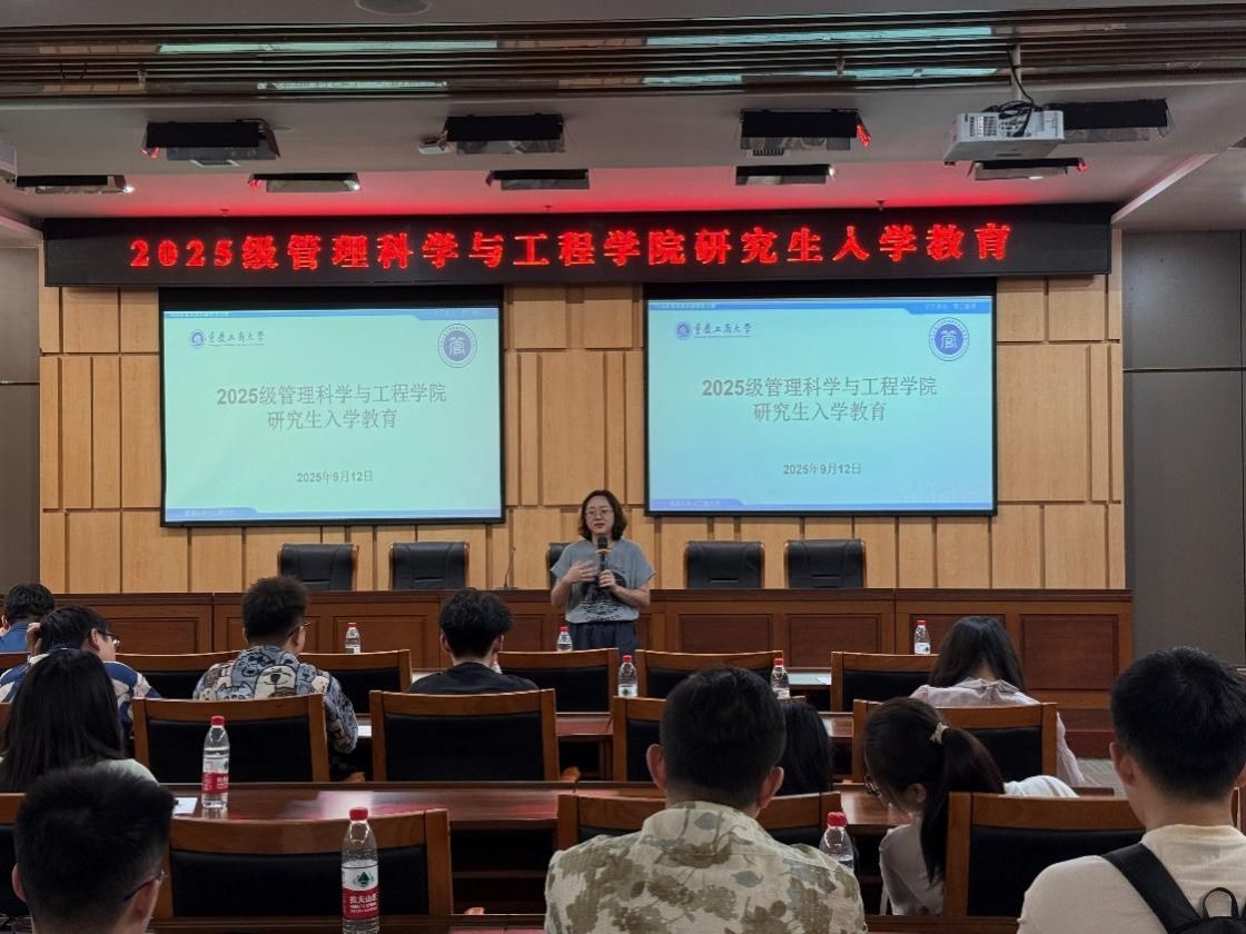 黄院长还介绍了学院的培养成效,让新生看到成长的榜样与动力。学院人才培养工作获兄弟高校关注与认同,受邀在多个论坛分享经验。学生创新创业参与度逐年提升,从2021年的8.3%增长到2024年的17.4%,通过学院的专业学会、竞赛、科研项目等平台,在科研、竞赛方面收获颇丰,获“创新创业教育先进集体奖”。学科竞赛参与度和成绩也不断提升,2022年以来,省级以上竞赛获奖学生众多,累计荣获国家级、省部级奖项700余人次。这些成果激励着新生在大学中积极进取,借助学院平台和资源,奋勇拼搏,收获成长与进步。黄院长将管理科学与工程学科的魅力与价值剖析得深入浅出,引导新生树立正确学习观、价值观,鼓舞大家在大学勇试新域、突破自我,为未来人生筑牢根基,新生们听得心潮澎湃、深受启迪。