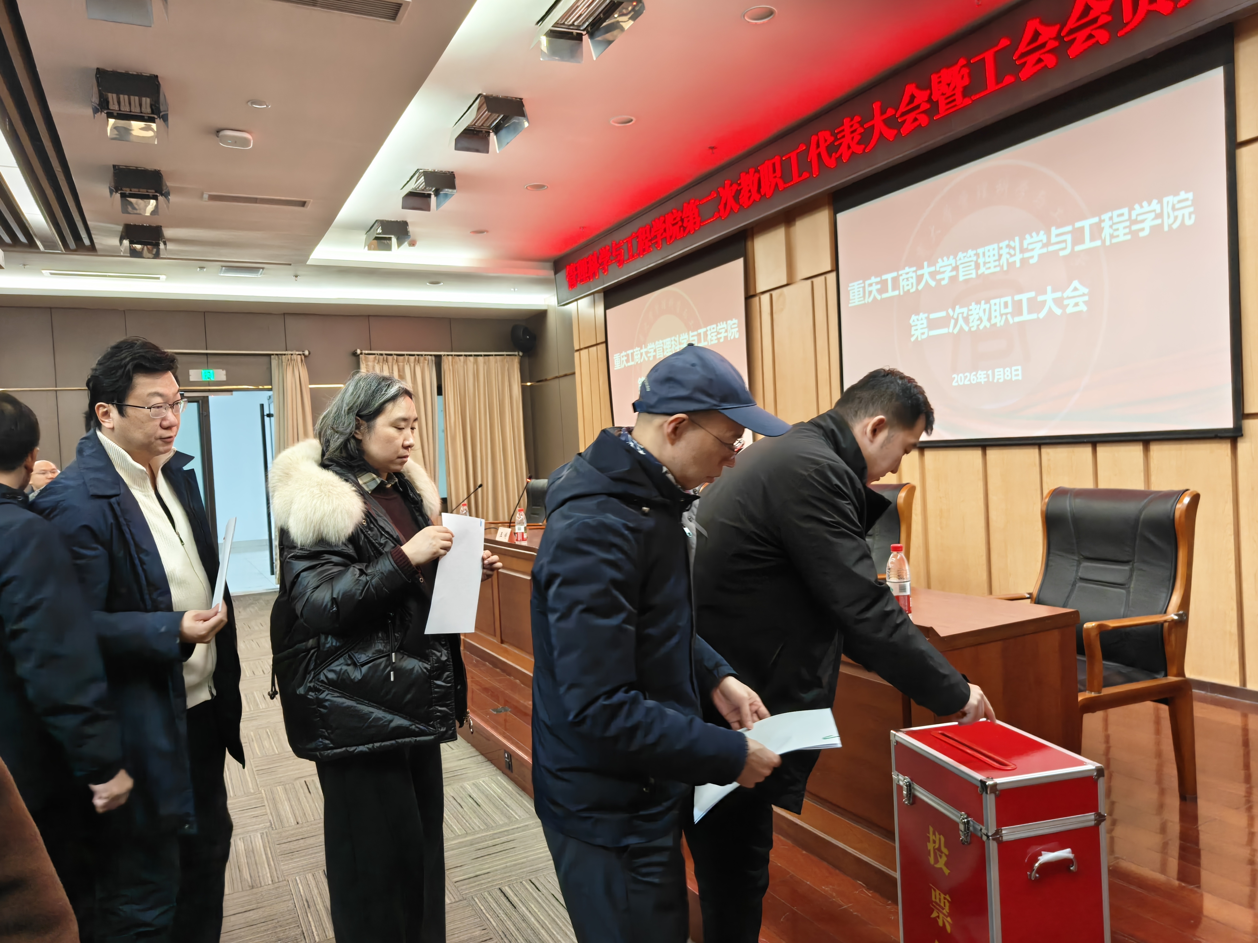 学院“两代会”换届选举大会由学院党委副书记赵钰鑫主持。大会审议通过了各项报告。院长黄钟仪作的《学院工作报告》系统总结了学院在课程建设、学科发展、社会服务、人才培养、师资队伍等方面取得成绩,分析了形势,并围绕“十五五”规划科学谋划了未来发展蓝图。工会主席饶扬德作的《工会工作报告》系统回顾了工会在加强思想政治引领、推进民主管理监督、维护教职工合法权益、丰富教职工文化生活等方面所做的工作和取得的成效。李元琳与温涵分别作了《学院财务报告》和《工会财务报告》。教职工普遍认为,内容详实、数据准确,经大会审议并表决,全体教职工以举手方式一致通过了上述报告。随后,根据《中国工会章程》和上级工会有关规定,大会以差额选举的方式,选举产生了学院新一届教代会执委会委员、工会委员会委员。