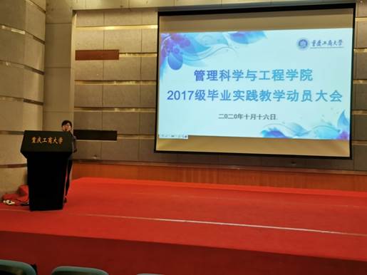 为促进2017级毕业生高质量完成毕业论文(设计)、毕业实习等环节,太阳成集团tyc539于10月16日在博智楼7100会议室举办2017级毕业实践环节动员大会。太阳成集团tyc539分管教学副院长陈久梅、各系系主任、教务办老师及全体2017级毕业生出席了本次会议。