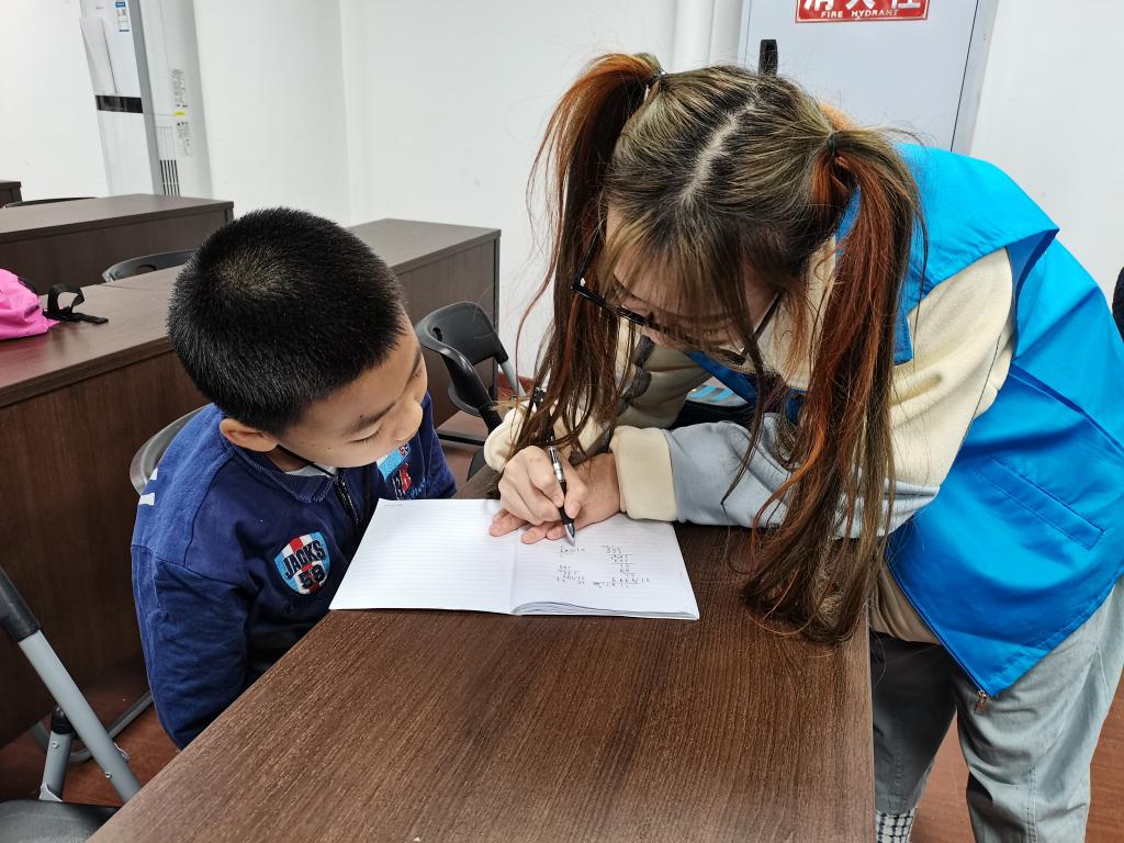 上午十一点,志愿者准时到达半山一村志愿活动室,并穿上会服组织孩子们进行签到。此次课程主要包括画画、洗手小课堂以及作业辅导。志愿者先给每个孩子分发了两张白纸和一支笔,然后拿出先前准备好的卡通图案,一笔一划地教孩子们画图,接着按照孩子们的喜好帮助他们给卡通图案上色,培养孩子们发挥想象力进行创作的能力。绘画结束后,志愿者开始给孩子们讲解“七步洗手”小知识,孩子们都认真聆听,模仿着正确的洗手动作。志愿者给孩子们辅导完周末作业后,活动便接近了尾声,孩子们依依不舍地与志愿者们道别。