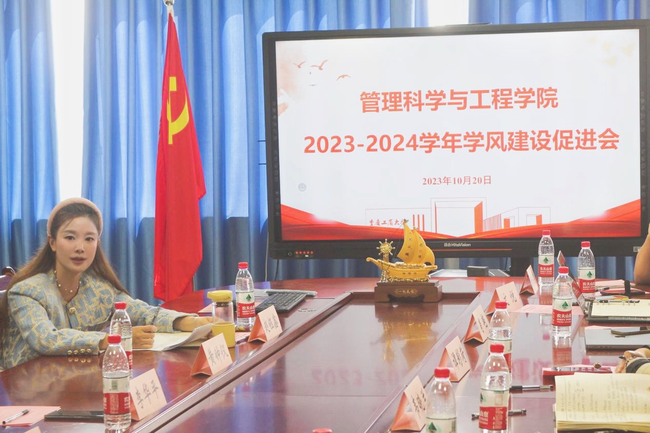 党委学工部(学生处)副部长谭彩荷高度肯定了管工学院对学风建设的重视和取得的成效,她讲到学风是大学生精神的集中体现,也是立德树人的本质要求,更是大学生成长成才的关键所在,辅导员老师在日常工作中要从教育、服务、管理等方面抓好学风建设,党委学工部也将和学院一起,构建学风建设机制,营造良好的人才培养氛围。