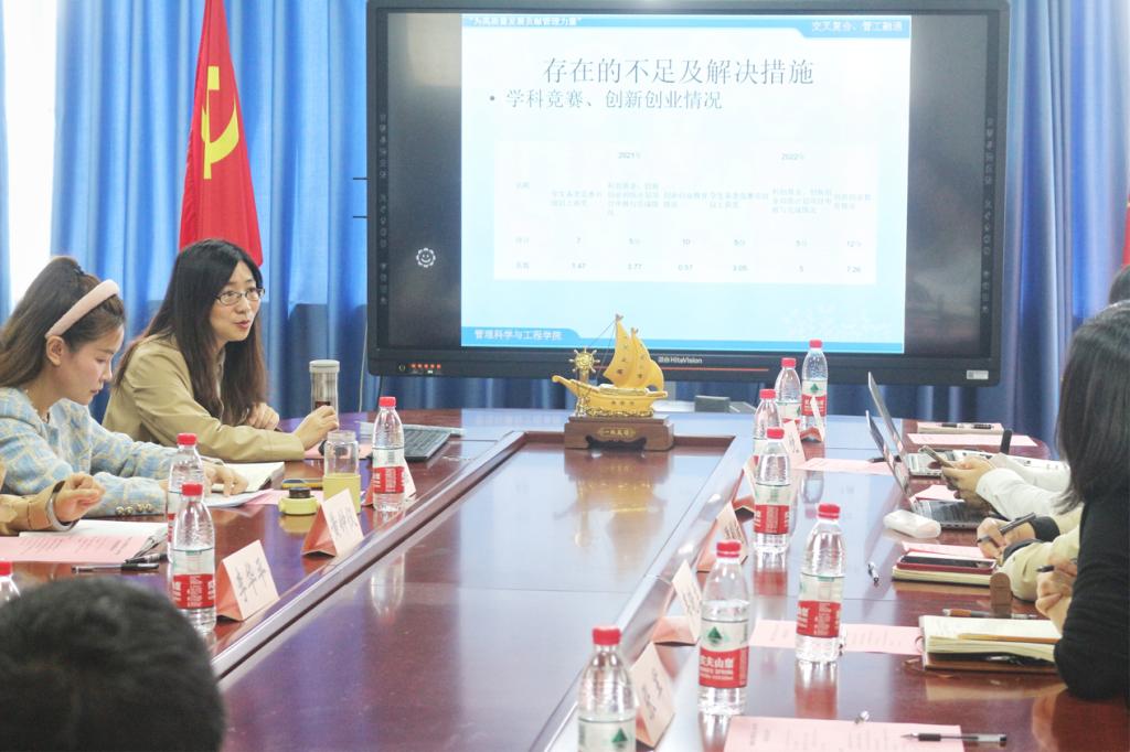 与会人员围绕学院学风建设进行了交流。物流系主任张军、信息管理与信息系统系主任涂智寿、工程管理系主任肖艳、电子商务系副主任文悦和学团办公室主任古纯玉等老师发表了自己的见解,大家从学生特点、课堂教学、专业培养、实习实践等方面展开热烈交流。