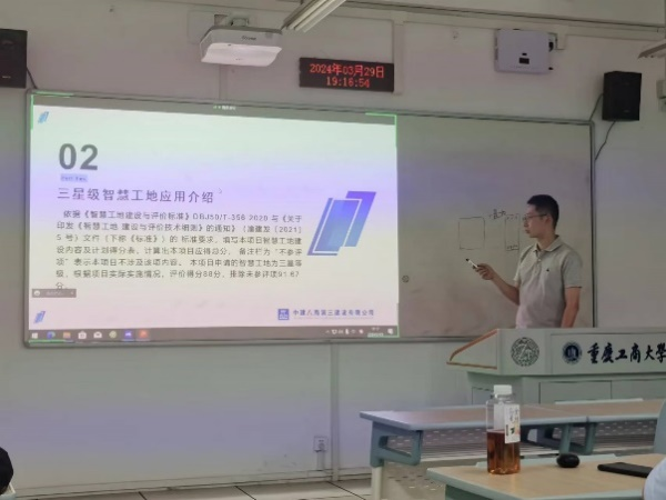 接着,林野老师聚焦目前管理项目中使用的BIM技术与智慧工地管理平台,他详细阐述了在基础设施施工管理、现场人员管理、施工设备管理、环境监测管理、质量与安全管理以及建造过程数字化等六个关键领域中,如何运用先进的信息技术和信息系统来提升管理效率。为了更好地说明这些应用,林野老师还以实际工程项目数字工地平台为例,深入剖析了其中涉及的信息系统和信息管理情况,使同学们对这些技术的实际应用有了更为直观的认识。在交流提问环节中,同学们积极发言,就建筑业的发展现状、未来趋势、项目招投标管理以及个人职业发展等问题向林野老师请教。林野老师耐心解答,不仅提供了专业的分析,还结合个人经验给出了实用的建议,赢得了在场同学的热烈掌声。
