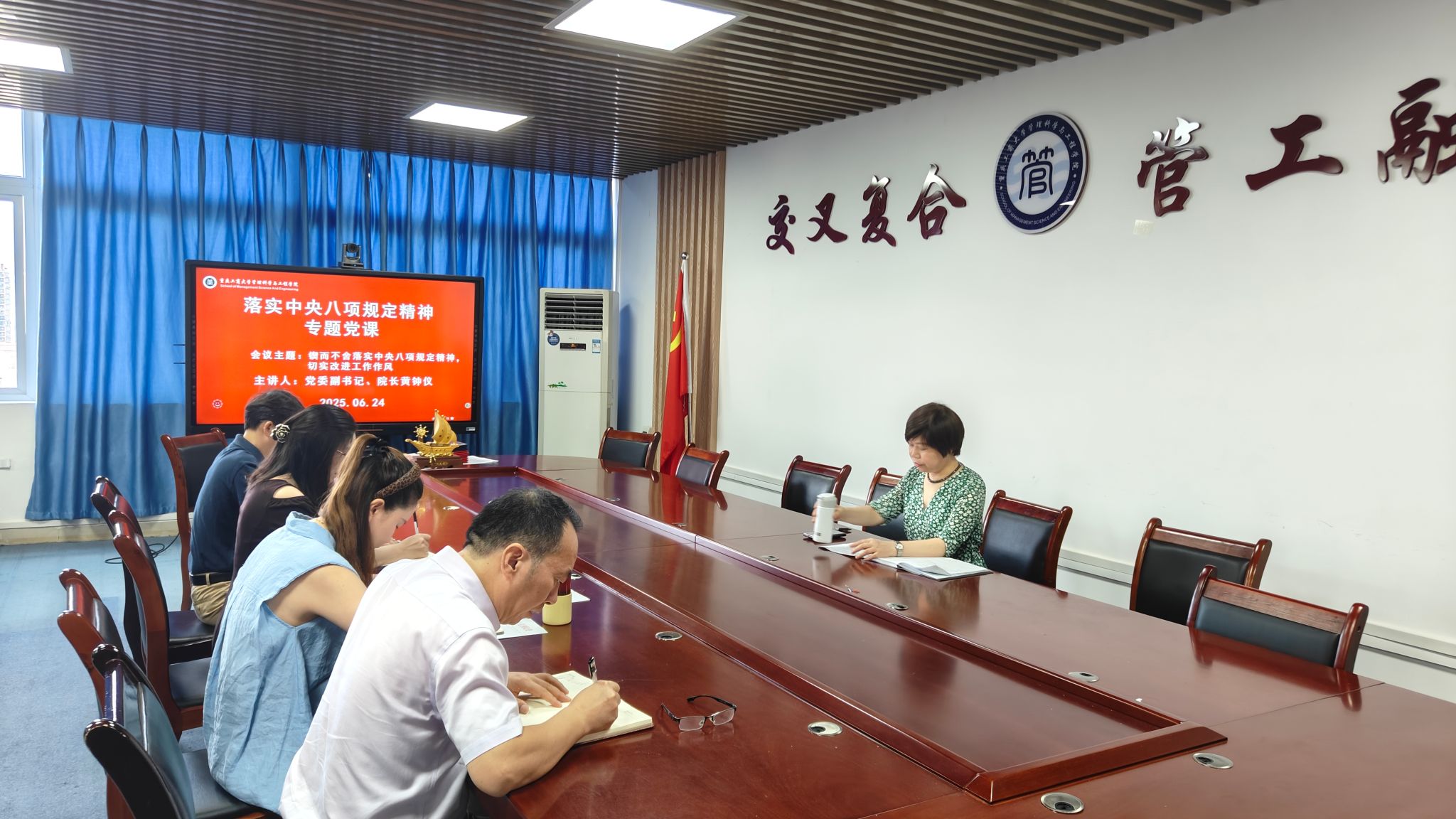 党课紧密结合中央八项规定精神,深刻剖析当前学院作风建设存在的突出问题。黄钟仪重点指出部分干部政治站位不高、责任意识不强,落实决策部署不力;担当精神不足,存在推诿扯皮、重点难点工作推进缓慢现象;工作作风漂浮,形式主义、脱离实际问题仍有显现;改革创新意识不强,存在“守摊子”思想;管理缺位越位、职责不清;以及基础工作不细、执行检查不到位等六方面主要表现。她更深入剖析了院领导、系主任、综合办公室及辅导员等不同岗位在文件审核把关、制度执行落实、材料规范管理等方面存在的具体问题症结。