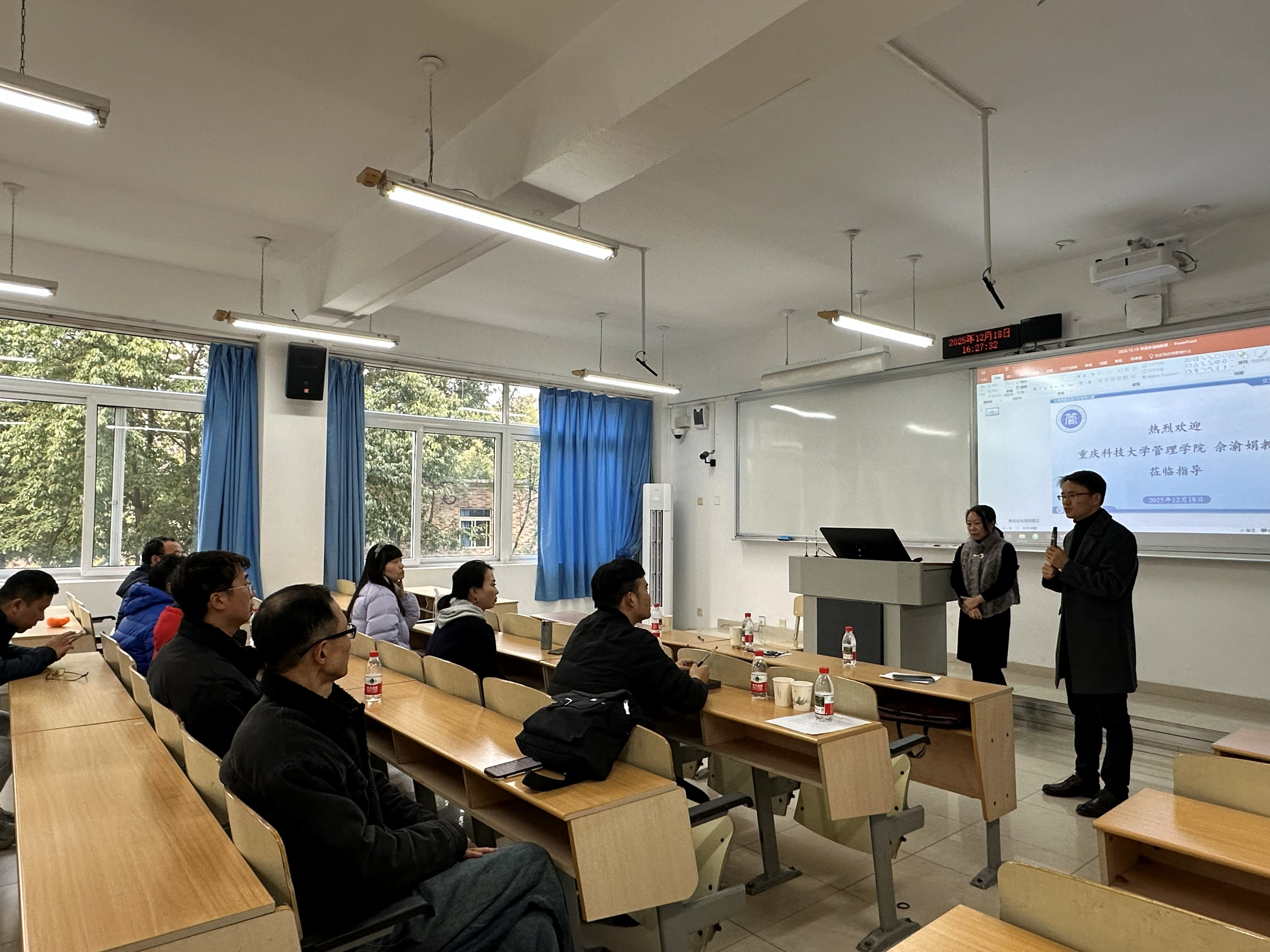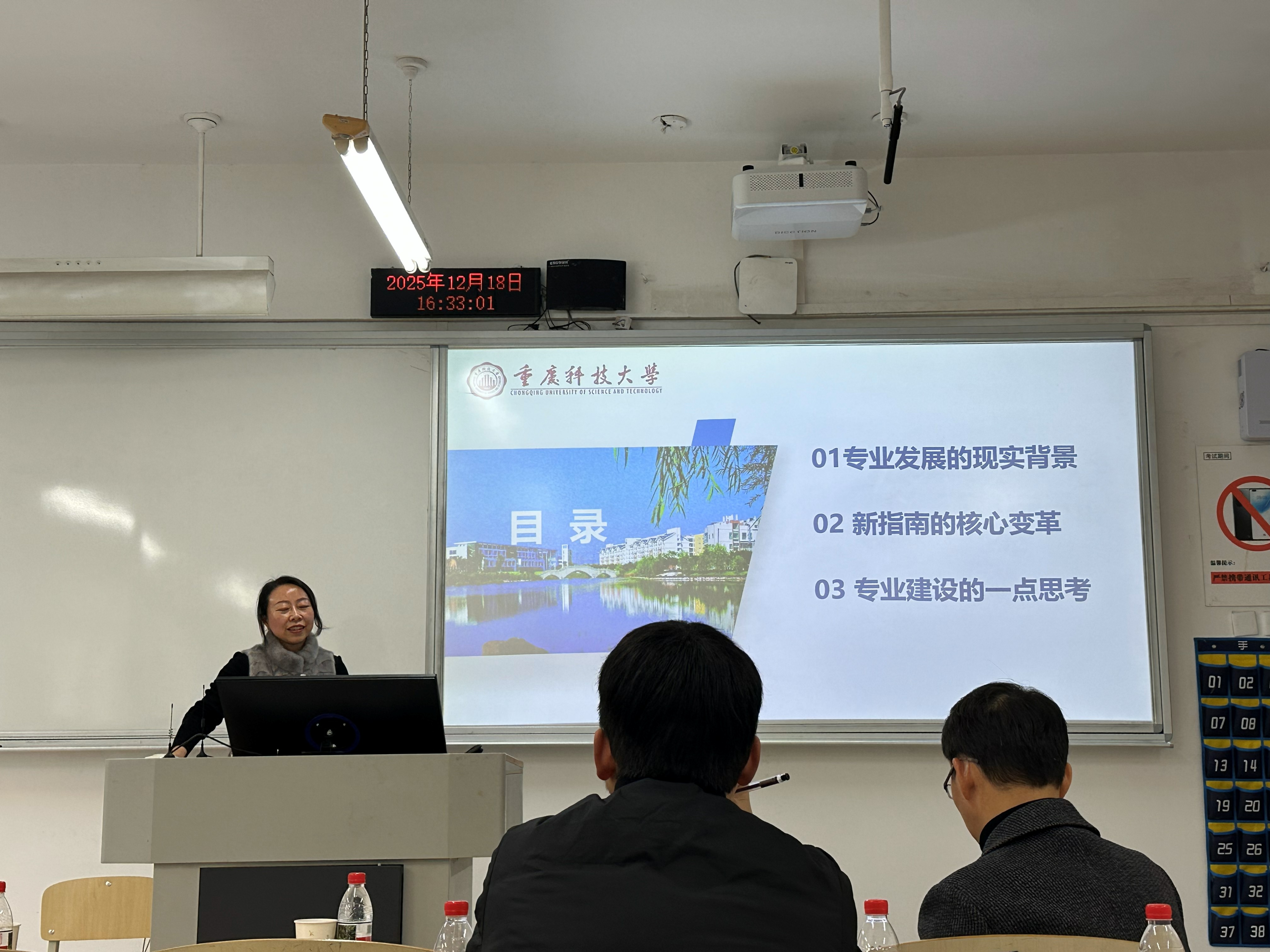 最后,梁桂保副院长在总结讲话中指出,佘渝娟教授的报告内容系统、信息量大、指导性强,不仅全面解读了新版专业指南的核心要义,也为我们应对行业变革、推进专业升级指明了实施路径。他强调,此次学习不仅是政策解读,更是一次工程管理专业统一思想、凝聚共识、启动改革的重要契机。面对新指南带来的机遇与挑战,学院和专业都将立即开展行动:一是成立专项工作组,系统推进2026级人才培养方案修订;二是组织开展多层次调研,充分结合区域发展需求与学校办学定位;三是强化师资队伍建设与教学条件保障,特别是“AI+工程”融合型师资的培养与引进;四是鼓励各专业教研室开展教学创新试点,在课程重构、实践教学、评价改革等方面积极探索。他要求全体教师深刻领会新指南精神,主动融入改革,共同将工程管理类专业建设推向更高质量、更具特色、更富活力的新阶段。